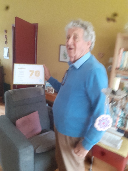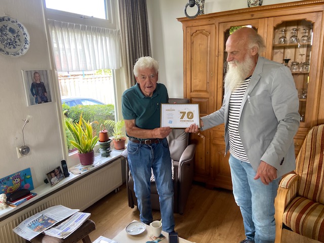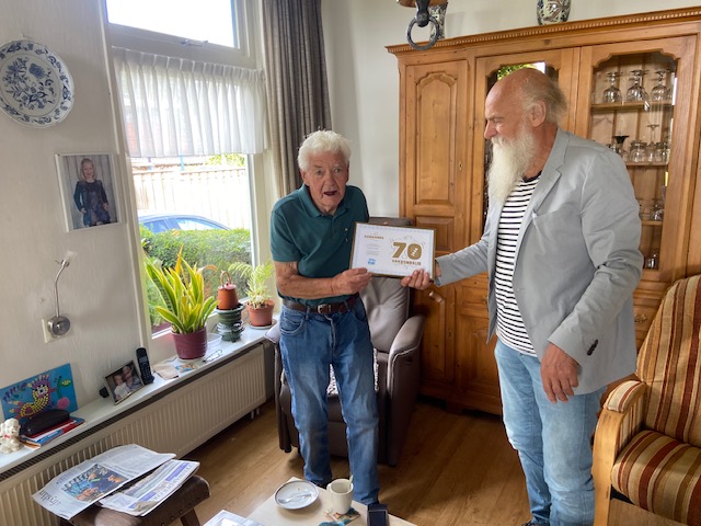 Waar ook de oorkonde van het 70 jarig jubileum al prominent aan de muur hangt.