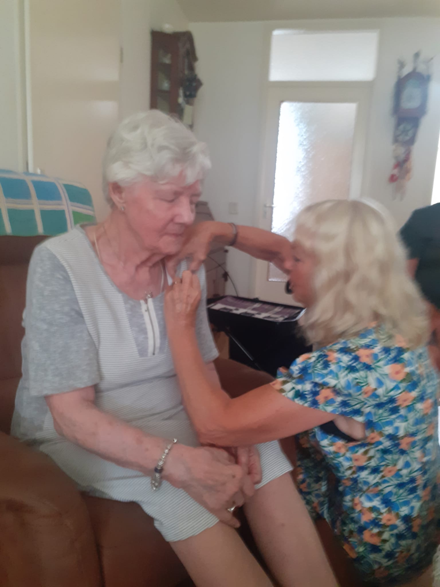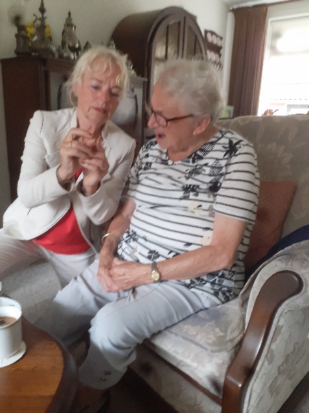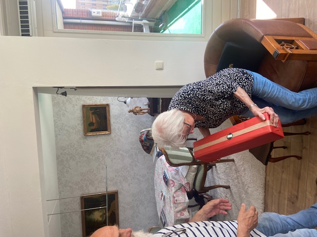De dochter was ook aanwezig om moeders wat bij te staan, fysiek kan mevr. de Boer nog goed meekomen.