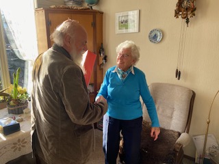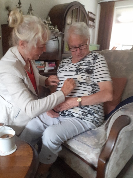 Zo zijn de leden Trienke Otter en Jan Metzlar van onze jubilarissen werkgroep alvast op bezoek geweest in Lemmer bij Mevr. R. Kallenkoot-de Jong (91 jr) die 60 jaar met de Bond verbonden is.