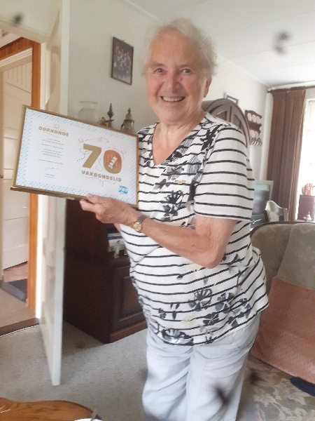 Woensdag 2 augustus heeft Lokaal FNV Heerenveen-Opsterland een wel heel bijzondere jubilaris bij haar thuis in Jubbega gehuldigd.