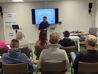 Interim voorzitter Jan Metzlar verwelkomde en 20 leden van de FNV uit de gemeente Heerenveen en gaf daarna het woord aan wethouder Sybrig Sytsma van de gemeente die een boeiende presentatie gaf .