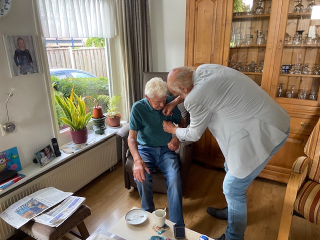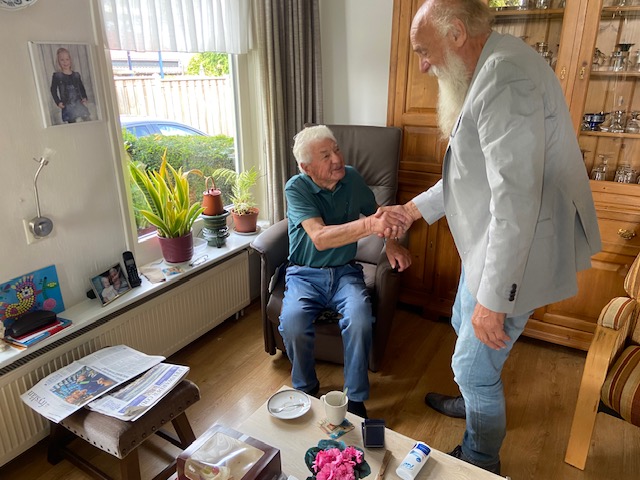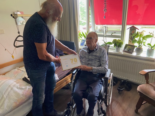 De zelfde middag ook een bezoekje gebracht aan dhr. J. v.d. Berg in Ouwsterhaule (90 jr) die 75 jarig jubileum beleeft.